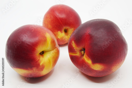 Three nectarines on white background. Nectarine fruit isolated on white background