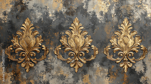 gold, leaf, ornate, accent, textured, dark, grey, background, design, decor, decoration, detail, element, elegant, luxury, pattern, floral, vintage, antique, classic, baroque, rococo, damask, arabesque, scroll, motif, carving, relief, art, craft, style, wall, panel, surface, texture, metallic, shine, glossy, shadow, abstract, wallpaper, illustration, image, graphic, design element, template, frame, border