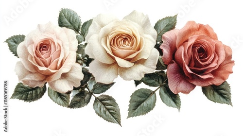 rose, rose, flower, flower, bloom, blossom, bloom, blossom, flower petals, leaf, leaf, floral, botany, nature, spring, summer, beauty, romantic, elegant, delicate, pastel, cream, pink, peach, colours, arrangement, bouquet, design, illustration, graphic, image, background, white, isolated, vintage, classic, soft, gentle, pretty, decorative, artwork, art, photo, picture, element, detail, macro