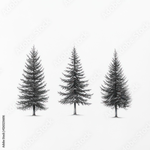 tree, tree, conifer, conifer, pine, pine, fir, fir, spruce, spruce, cedar, evergreen, crayons, drawing, drawn, vignetting, sketched, artwork, art, white, background, minimalist, simple, nature, landscape, monochrome, black, grey, shading, detail, graphic, illustration, image, visual, design, single, trio, group, set, isolated, vertical
