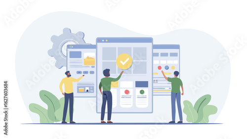 interface, screen, gear, background, design, project, team, people, interact, application, development, coding, programming, software, website, technology, business, innovation, collaboration, workflow, management, planning, strategy, success, achievement, solution, process, task