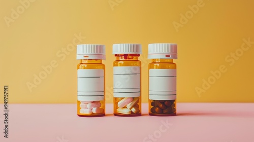 Three Pill Bottles on Pink and Yellow Background