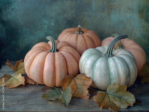 pumpkin, autumn, fall, decoration, seasonal, leafy, table, display, festive, harvest, holiday, colourful, gourd, nature, vintage, look, home, texture, photo, artistic, life