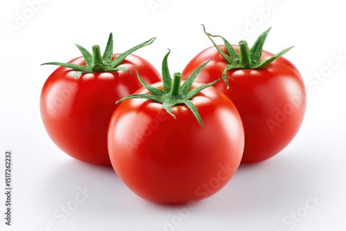 tomatoes, red, ripe, fresh, vegetable, food, produce, white, background, isolated, closeup, group, flocked, stem, vibrant, healthy, ingredient, cooking, photo, on, product, three, fruit, round, glossy