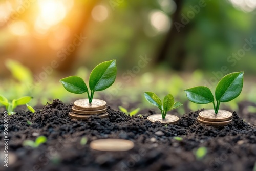 growth, investment, finance, money, plant, sapling, coin, dirtied, sun, nature, wealth, prosperity, increase, progress, development, germinating, leaf, green, background, blurred, stack, economy, capital, earning, savings, future, profit, generating, return, income, revenue, asset, business, success, abundance, rich, fertile, plantation, ecology, environment, sustainable, harvest, seed, root, market, financial, banking