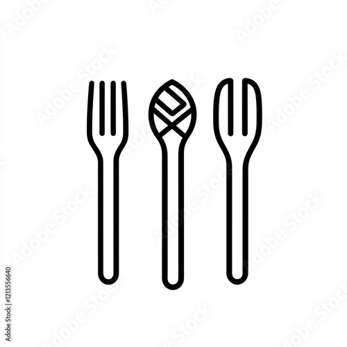 fork, cutlery, eating, dining, food, utensil, eatery, tableware, meal, kitchen, design, graphic, illustration, vector, simple, black, white, line, art, icon, logotype, modern, minimalist, graphic design, image, background, template, symbol, design element, black-and-white, outline, silhouette, drawing, decorative, utensil, table setting, abstract, modern style