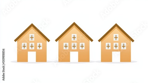 Three Simple Brown Houses on White Background
