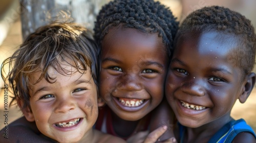 three, smiling, children, from, different, background, face, close, together, in, heartwarming, photo