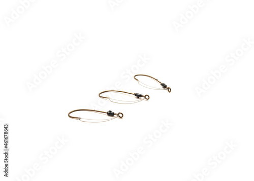 Three stainless weedguard baitholder hooks with long shank bronze finish fishing tackle isolated on white