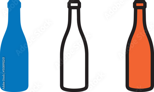 Three stylized bottles blue orange and black in simple minimalist vector format