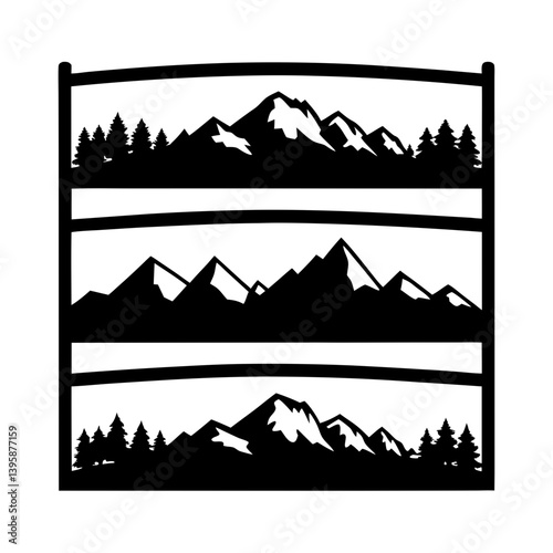mountain, range, mountain, landscape, silhouette, metal, art, shelf, decor, wall, home, interior, design, black, three, tiered, layer, nature, scenic, view, forest, tree, pine, fir, peak, ridge, vale, wildlife, animal, bird, rock, cliff, snow, capped, winter, summer, spring, autumn, rustic, modern, minimalist, geometric, abstract, artwork, graphic, illustration, photo