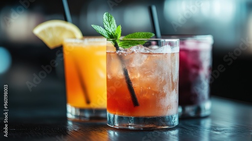 cocktail, bar, drink, vibrant, colourful, social, refreshment, ice, straw, lively, drink, garnish, beverage, party, fun, celebration, cheerful, refreshing, alcohol, summer, mixed drink, nightlife, tasty, modern, trendy, cooling, chill, friends, evening, lemon, mint, orange, happy hour, spirit, delicious, urban, iced, cooler