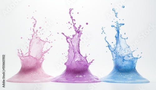 splash, liquid, pink, purple, blue, crown, dynamic, vibrant, colours, white, background, three, upward, shooting, shape, paint, dye, fluid, water, texture, glossy, smooth, droplet, impact, movement, energy, abstract, art, design, graphic, illustration, creative, visual, beautiful, aesthetic, colourful, pastel, shades, hue, tone, style, image, photo, photo