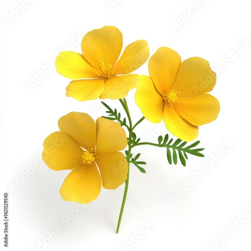 cute, sticker, three-dimensional, rendering, yellow, flower, blossom, flower petals, bloom, stem, leaf, plant, nature, botany, flora, high-coloured, colours, bright, three, bunch, bouquet, delicate, floral, arrangement, closeup, isolated, digital, graphic, illustration, image, spring, summer, garden, beauty, realistic, vibrant, xanthous, gold, design, natural, photorealistic, composition, symmetry
