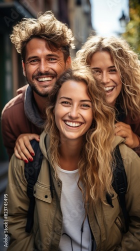 joy, friendship, fun, city, casual attire, outdoors, vibrant, youth, laughing, group, cheerful, contemporary, family, smile, connection, positive, happy, urban, community, togetherness, street, relaxed, carefree, love, oneness, buddy, companion, sunny, daytime, emotion, gathering, lifestyle, playful, kinship, authentic, pleasure, enjoyment, amity, energetic, weekend, exuberance, moment, bond, sociable