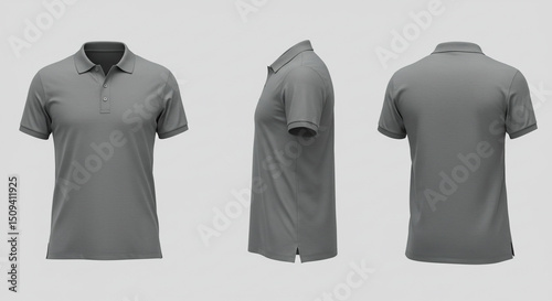 polo, shirt, grey, clothing, apparel, fashion, casual attire, style, design, fabric, cotton, short sleeve, collar, buttons, front, side, back, view, white background, isolated, garment, textile, wear, modern, trendy, template, presentation, retail, e-business, online shopping, product, display, merchandise, uniform, activewear, menswear, unisex, minimalist, simple, classic, elegant, comfortable, soft, premium, quality, formal