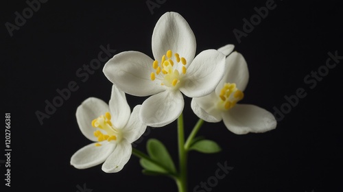 flower, blossom, bloom, white, flower petals, yellow, stamen, pistil, botany, flora, nature, plant, spring, summer, beauty, delicate, elegant, fragile, pure, serenity, peace, calmness, calmness, freshness, vibrant, bright, closeup, macro, isolated, background, dark, black, studio, photo, image, picture, floral, design, wallpaper, art, aesthetic, detail, texture, flowering, growth