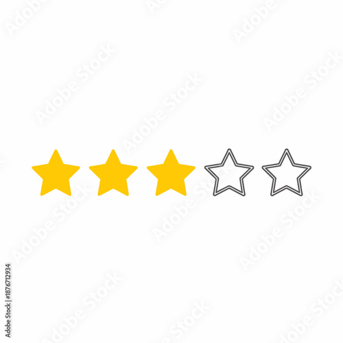 Three yellow stars and two outlined grey stars representing a 3 out of 5 rating on a white background.