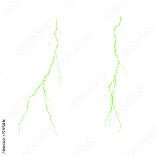 Thunder-storm and lightnings Cracked surface effect with green lightning design element on transparent background