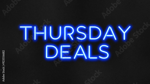 thursday deals blue neon lettering on plain dark black background