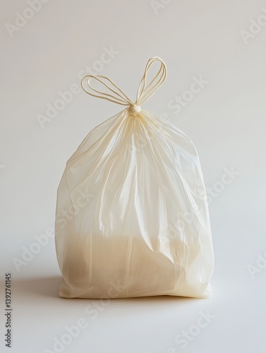 trash bag, garbage bag, plastic bag, recycling, denied, rubbish, disposal, waste management, environmental protection, sustainability, environmentally friendly, biodegradable, clean, tidy, organised, home, kitchen, studio shot, white background, simple, minimalist, cardboard box, container, material, texture, off-white, beige, tied, knot, waste disposal, garbage collection, eco, planet earth, reuse, reusing