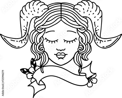 tiefling character face with scroll banner illustration