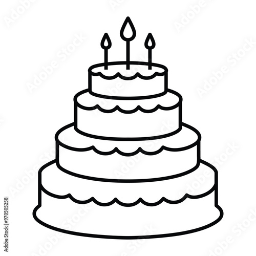 cake, birthday, tiered, candle, layer, food, icon, illustration, line, outline, art, colouring, page, vector