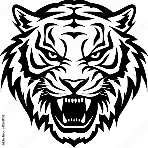Tiger - Black and White Isolated Icon - Vector illustration