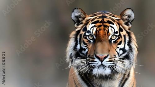 Tiger Head Closeup: Vibrant Colors and Wide Eyes for Wallpaper Design. Concept Wildlife Photography, Animal Closeups, Nature Textures, Vibrant Wallpaper Designs
