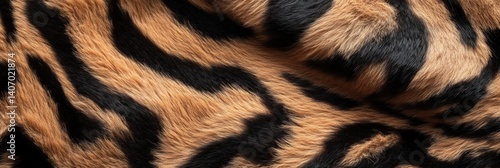 Tiger skin texture with copy space. Close-up tiger pattern. Big Cat fur. Tiger stripes. Realistic tiger skin. Tiger design texture. Detailed tiger skin close-up. Wild Animal texture.