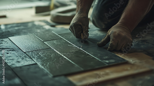 tile, installation, construction, men at work, hand, floor, tile, laying, work, repair, renovation, craftsmanship