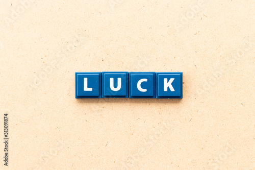 Tile letter in word luck on wood background