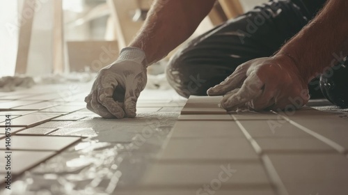 tiler, laying, ceramic, tile, commercial, building, renovation, precision, design, professional, tile, installation, interior, optical, men at work, adhesive, carefully, placing