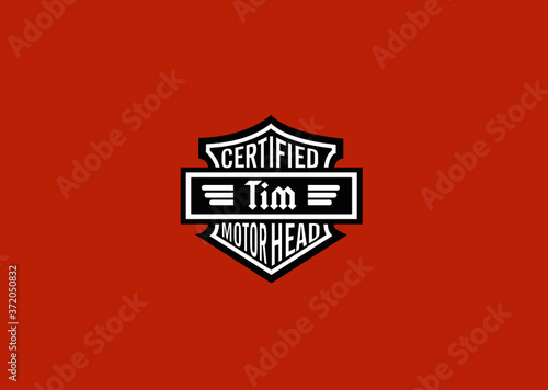 Tim Name Art Motor Head Theme Design Black and White Emblem with Orange Background uniquely personalized Illustration