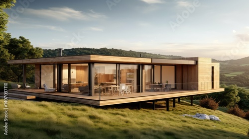 timber, wood, construction, illustration, architecture, modern, sustainable, minimalist, contemporary, design, natural, light, glasses, window, environment, harmony, innovative, sleek, house, material, hill, sky, interior, line, flood, clean, approach, emphasize, structure