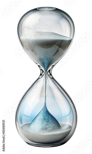 Time Flowing: Classic Hourglass with Falling Sand Grey. PNG transparent image, AI generative