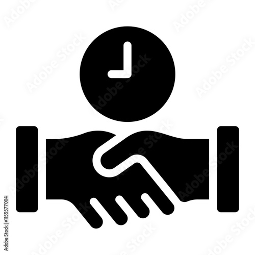 time, delay, clock, partnership, handshake, deal, agreements, agree, contract, icon, solid, glyphs, graphic, set, illustration