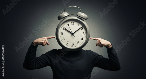 "Time Is Ticking – Surreal Man with Alarm Clock Head"