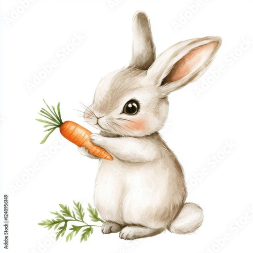 Tiny bunny with a little carrot collection, Watercolor style, isolated on white background, clipart