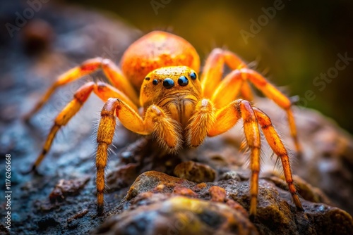 Tiny Orange Spider on Rock - Detailed Macro Photography