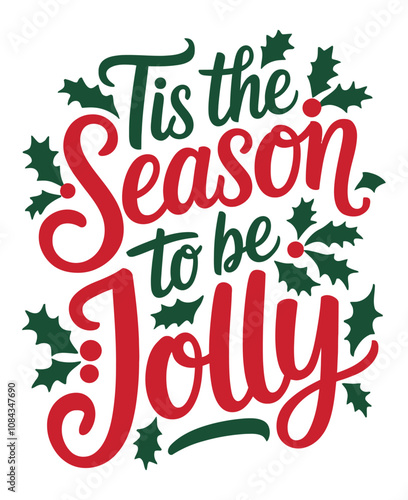 Tis the Season of Cheer: A Festive Ode to Joy with Holly Leaves, Bright Berries, and a Splash of Holiday Spirit! Typography Vector Design