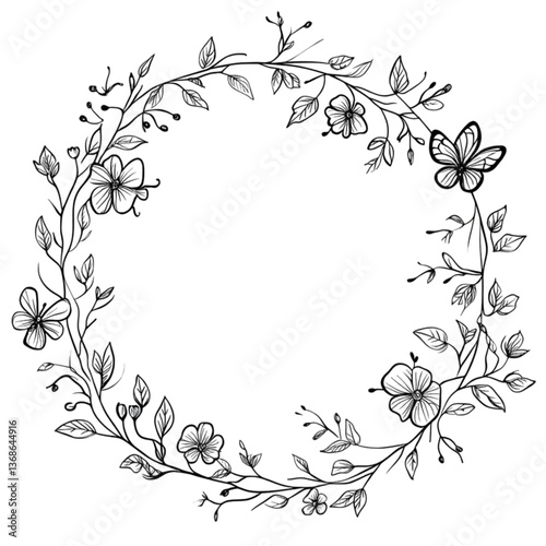 black, white, ornamental, decorative, floral, design, circle, elegant, classic, monochrome, simple, invitation, card, wedding, christmas, easter, frame, border, pattern, vintage, minimalist, isolated, celebration, nature, plant, leaf, round, flourish, graphic, artistic, traditional, hand-made, drawing, vignetting, greyscale, neutral, remembrance, funeral, memorial, spring, summer, autumn, winter, holiday, new year