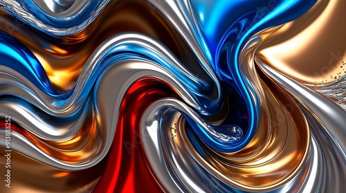 Title Shiny metallic waves in red, gold, silver, and blue. Perfect for backgrounds, banners, prints, and digital designs.