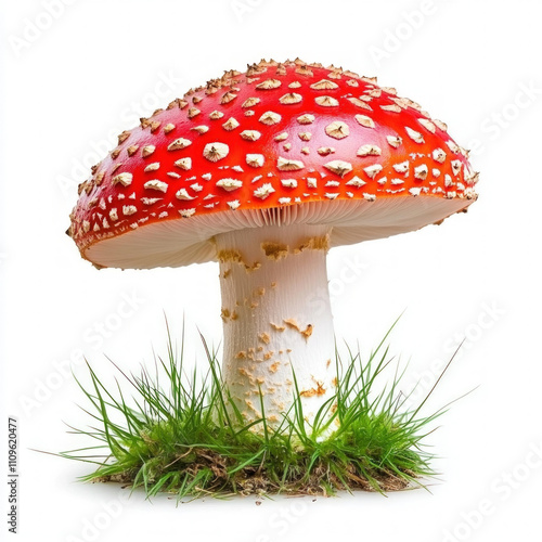 toadstool, isolated, mushroom, red, autumn, nature, forest, fungal, amanita, agaric, poisonous, fly, poison, fungal, fly agaric, toxic, white, cap, grass, wood, moss, season, green, plant, dangerous