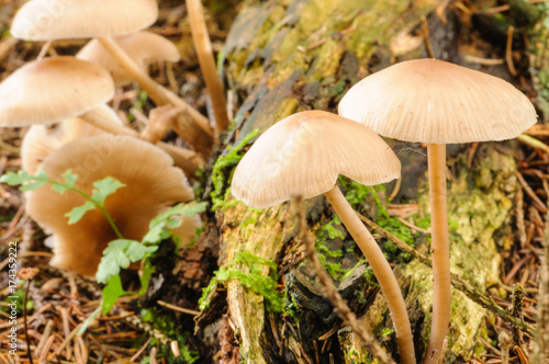 Toadstool mushrooms growing on a forest floor