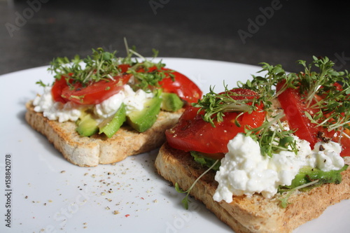 toast, sandwich, tomatoes, avocado, salad, cress, sandwich, vegetarian, vegetable, breakfast, healthy, red, epicure, lunch, cooking, fresh, peppercorn, vegetarian, fitness, athlete, diet, take off, wheaten