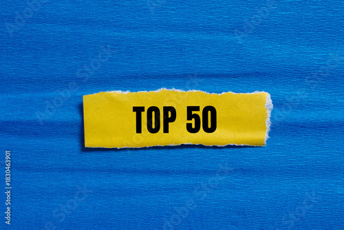 Top 50 message written on ripped torn paper background. Conceptual Top 50 symbol. Copy space.