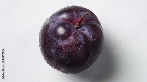 top down photo of a plum, pure white background, plums on white background, purple, fruit