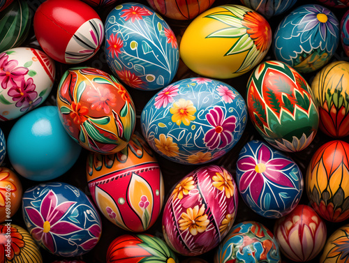 Top view abstract background with colourful easter eggs