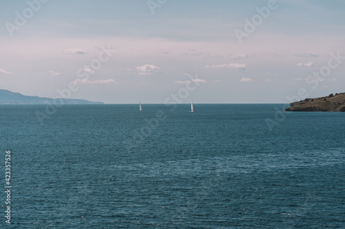 Top view aerial image from drone of an stunning beautiful sea landscape beach with turquoise water. Beautiful Sand beach with turquoise water,aerial drone shot. 'Foca' Izmir Turkey